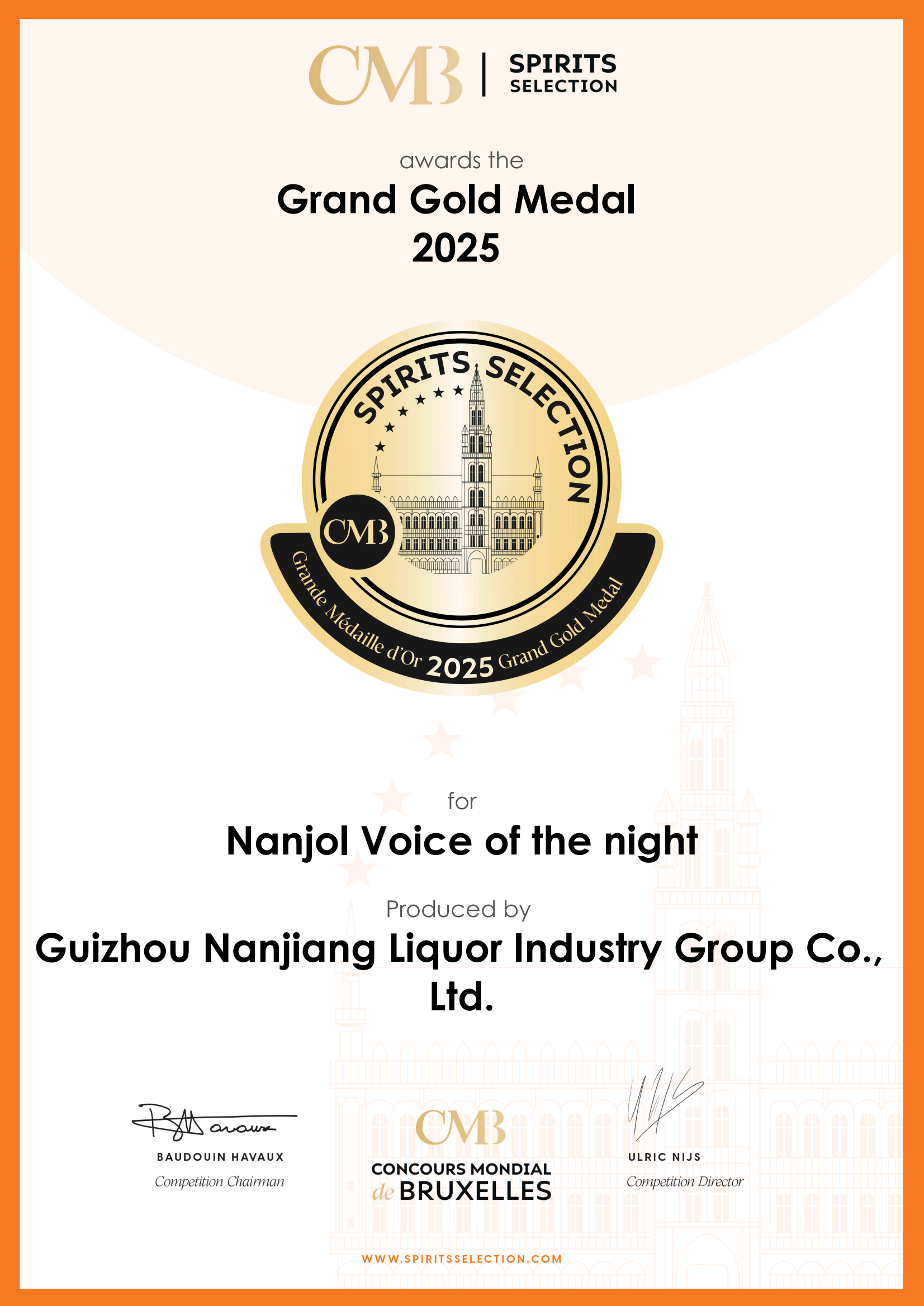 贵州南将黑夜之声荣获2025布鲁塞尔国际烈性酒大奖赛 “大金奖”