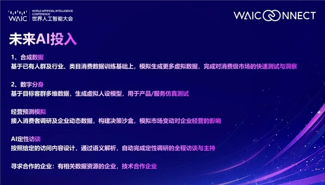 2)场景创新X:应用合成数据技术模拟虚拟市场,实现产品策略零成本试错;构建经营预测沙盒,接入实时数据预演市场波动影响;通过AI定性访谈完成深度用户调研,成本仅为传统方法的1/5。