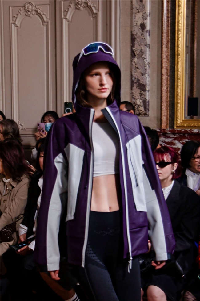 淡彩粉、冰川灰等取自大地冰川的色彩,将自然诗意转化为当代设计语言。可拆卸组件,将山脉轮廓、风化岩层简化为几何分割线应用于皮革拼接,将飞鸟与鱼的仿生结构应用到服装结构,再加上记录皮革来源与碳足迹的材质溯源芯片,既贴合年轻群体对功能、环保的双重需求,更让企业在迭代中焕发鲜活活力。