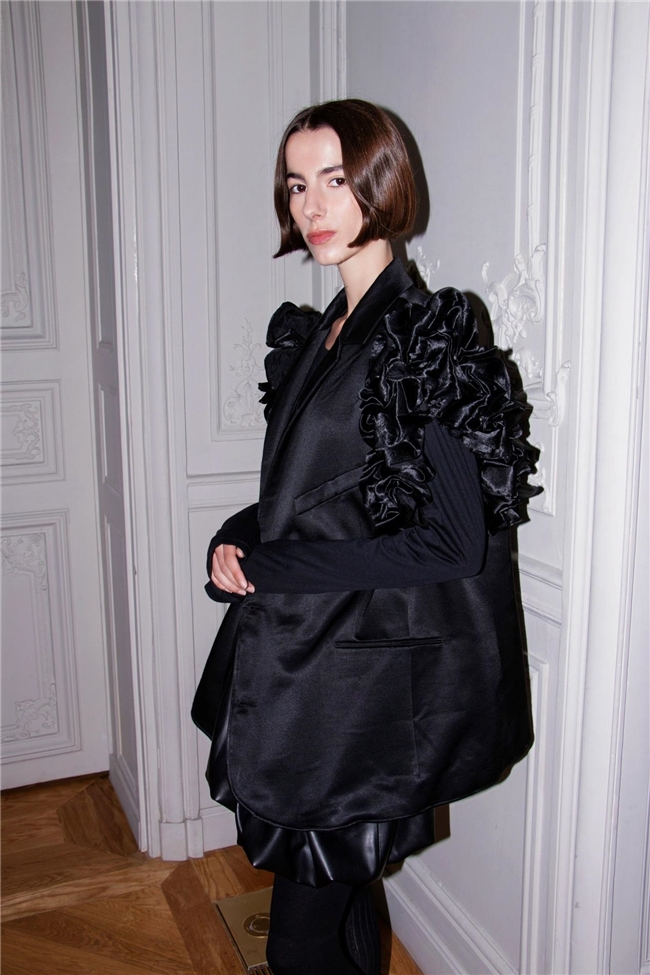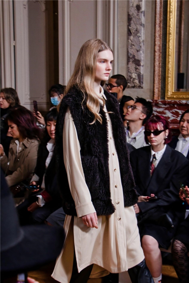 服装工艺上立体压褶、面料再造、可转换设计等工艺,呈现肌理对比、量感碰撞与功能美学的统一,让服装兼具雕塑感与实用性。从廓形大衣、可拆卸皮草外套,到职场旅行两用套装,如月设计覆盖多元场景,既满足都市精英的情感依托需求,也契合独立女性对风格与舒适的追求,精准承接不同客群偏好。