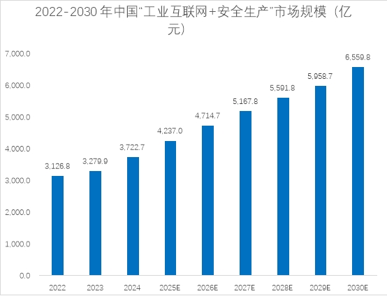 然而,反周期增长的光环之下,也隐藏着深刻的挑战。下图显示,2022-2030年中国"工业互联网+安全生产"市场规模预计将从3,126.8亿元增长至6,559.8亿元,年均复合增长率超过8%。如此高的增长率能否持续?我们认为,在经历了过去几年的高速增长后,"工业互联网+安全生产"领域即将进入一轮深刻的调整期。市场增长将从粗放式的规模扩张转向精细化的价值挖掘,从通用型解决方案向垂直细分领域深耕,从单一技术应用向综合服务能力跃升。简单来说,就是产业将告别"跑马圈地"的时代,进入"精耕细作"的新阶段。
