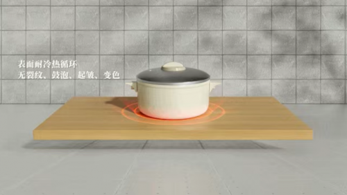 兔宝宝彩臻板应用了创新研发的“五耐”饰面技术,拥有卓越的耐黄变、耐高温、耐刮擦、耐腐蚀和耐污染性能,无惧受潮、高温和日常意外磕碰划擦,尤其适合厨房、卫浴这种长期面临高温、水汽或者油污多重考验的空间。