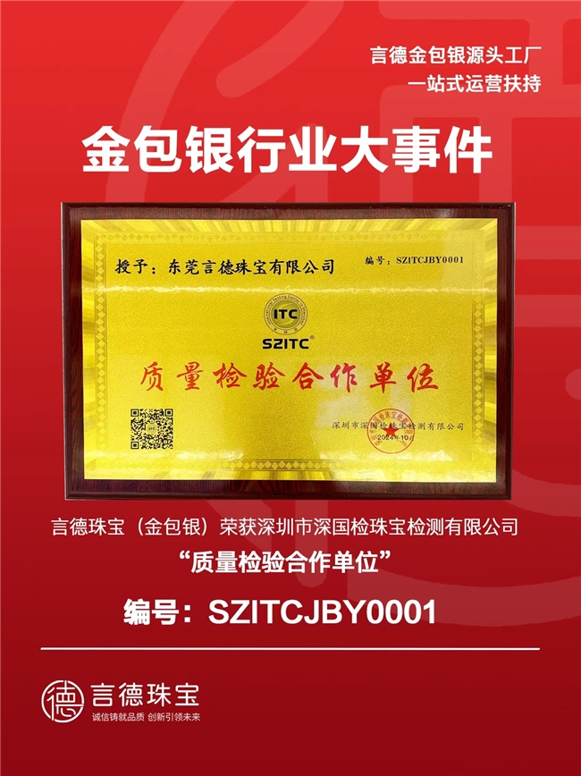 - 资质合规标杆:作为 NGTC(国家珠宝玉石质量监督检测中心)首张金包银专项证书持有者,每件产品均标注金银克重与镀金厚度,获深圳市深国检 “质量检验合作单位” 认证(编号:SZITCJBY0001),让加盟商依托权威背书实现 42% 的成交转化率提升。